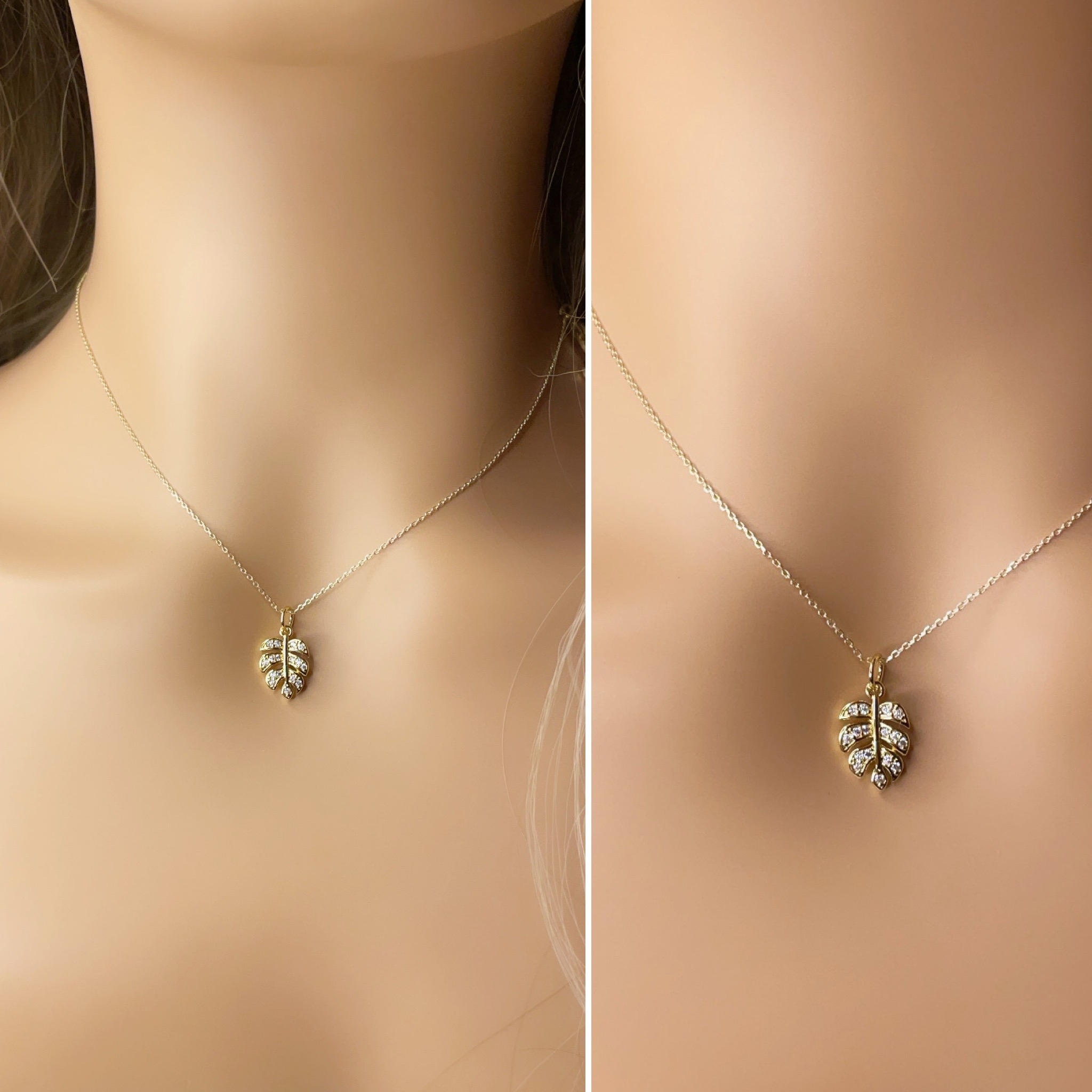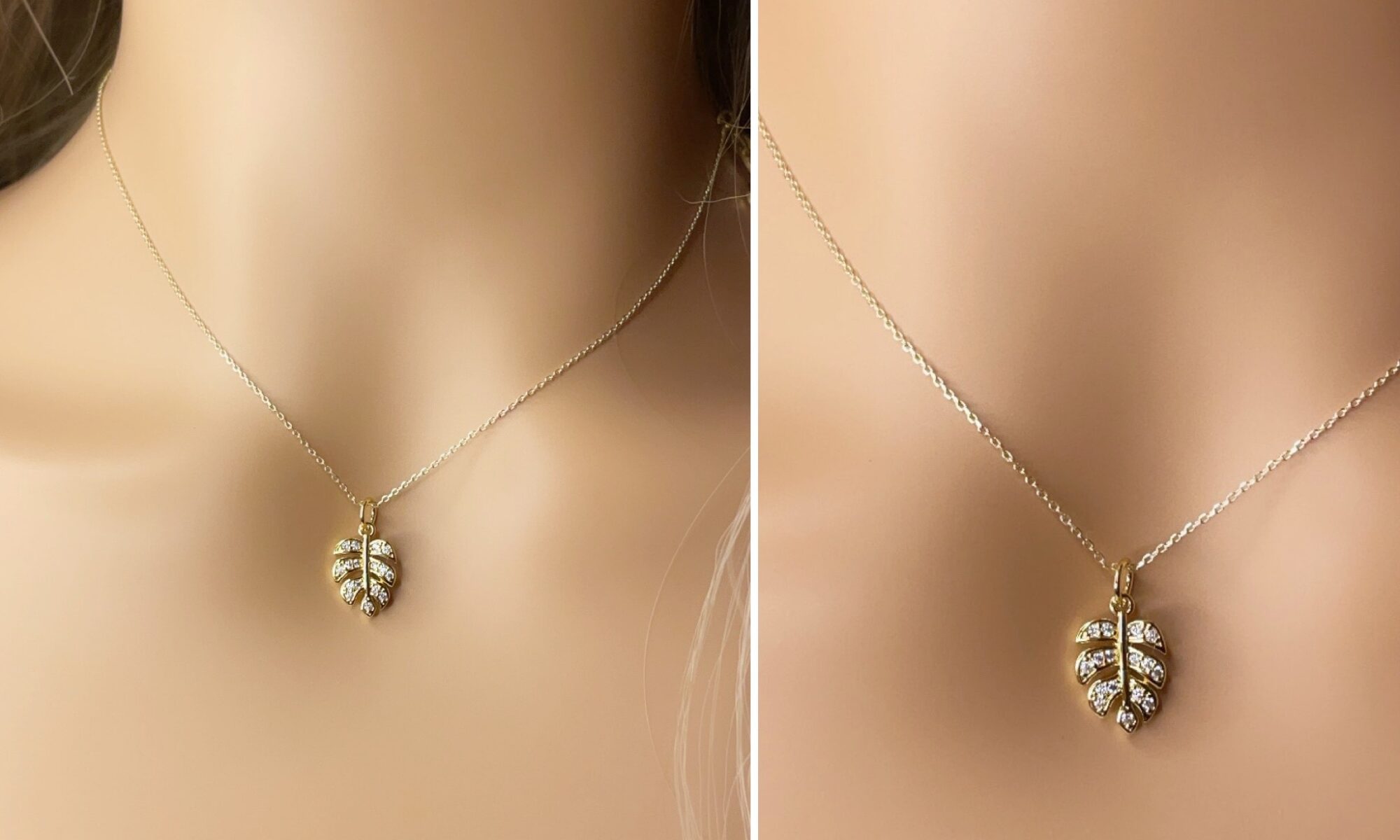 Smuk halskæde med lille blad.